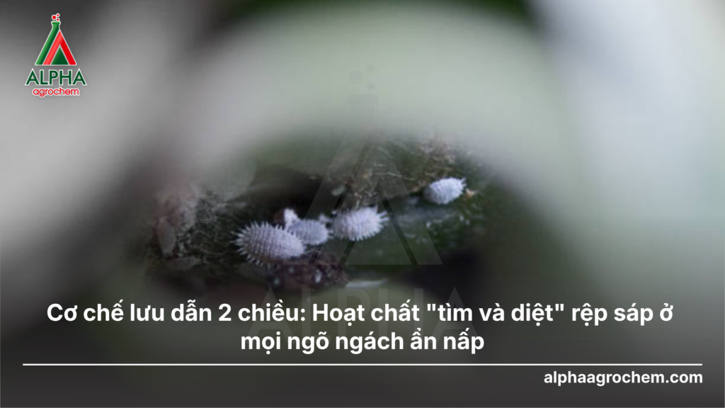 Rệp sáp là đối tượng dịch hại cực kỳ lỳ lợm nhờ lớp giáp sáp dày và tập tính ẩn nấp siêu hạng. Để tiêu diệt chúng, các loại thuốc tiếp xúc thông thường gần như vô dụng. Giải pháp đột phá hiện nay chính là cơ chế lưu dẫn 2 chiều – công nghệ giúp hoạt chất tự tìm đến nơi rệp đang trốn. Hãy cùng chuyên gia Alpha Agrochem giải mã sức mạnh của dòng thuốc trị rệp sáp “thông minh” này và cách chúng bảo vệ vườn cây toàn diện từ rễ đến ngọn.