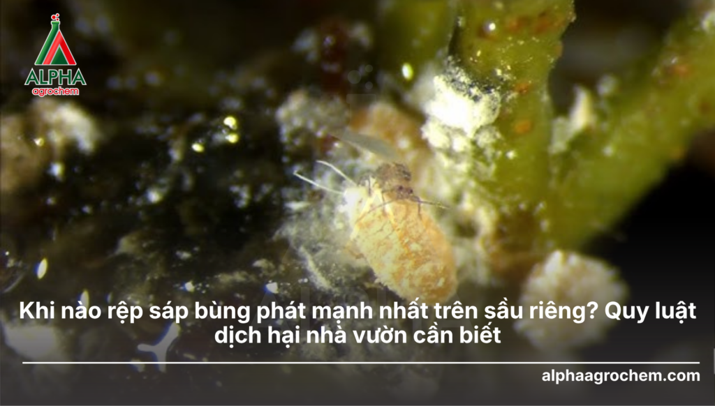 Hiểu rõ thời điểm rệp sáp sầu riêng xuất hiện khi nào là yếu tố then chốt để bảo vệ năng suất vườn cây. Việc chủ động đón đầu các đợt bùng phát giúp bà con tiết kiệm chi phí và tránh tình trạng rụng bông hàng loạt. Hãy cùng chuyên gia Alpha Agrochem giải mã quy luật sinh trưởng của rệp sáp và tìm ra “thời điểm vàng” để xử lý dứt điểm dịch hại này trong mùa vụ 2026.