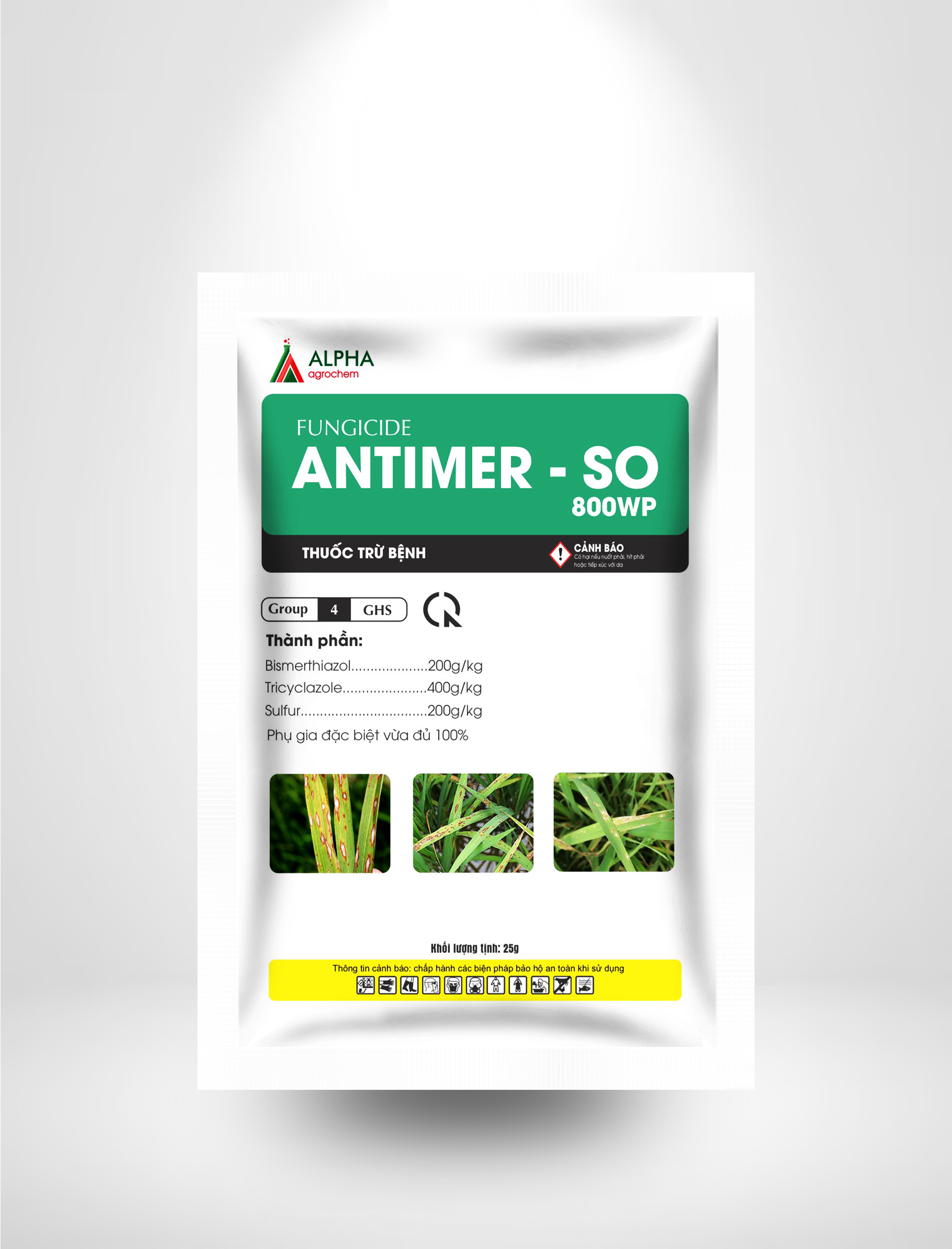 ANTIMER-SO 800WP là thuốc trừ bệnh thế hệ mới. Với công dụng giúp cây trồng phòng trừ các loại nấm bệnh gây hại. Thuốc được đăng kí trừ bệnh đạo ôn và bạc lá trên lúa.