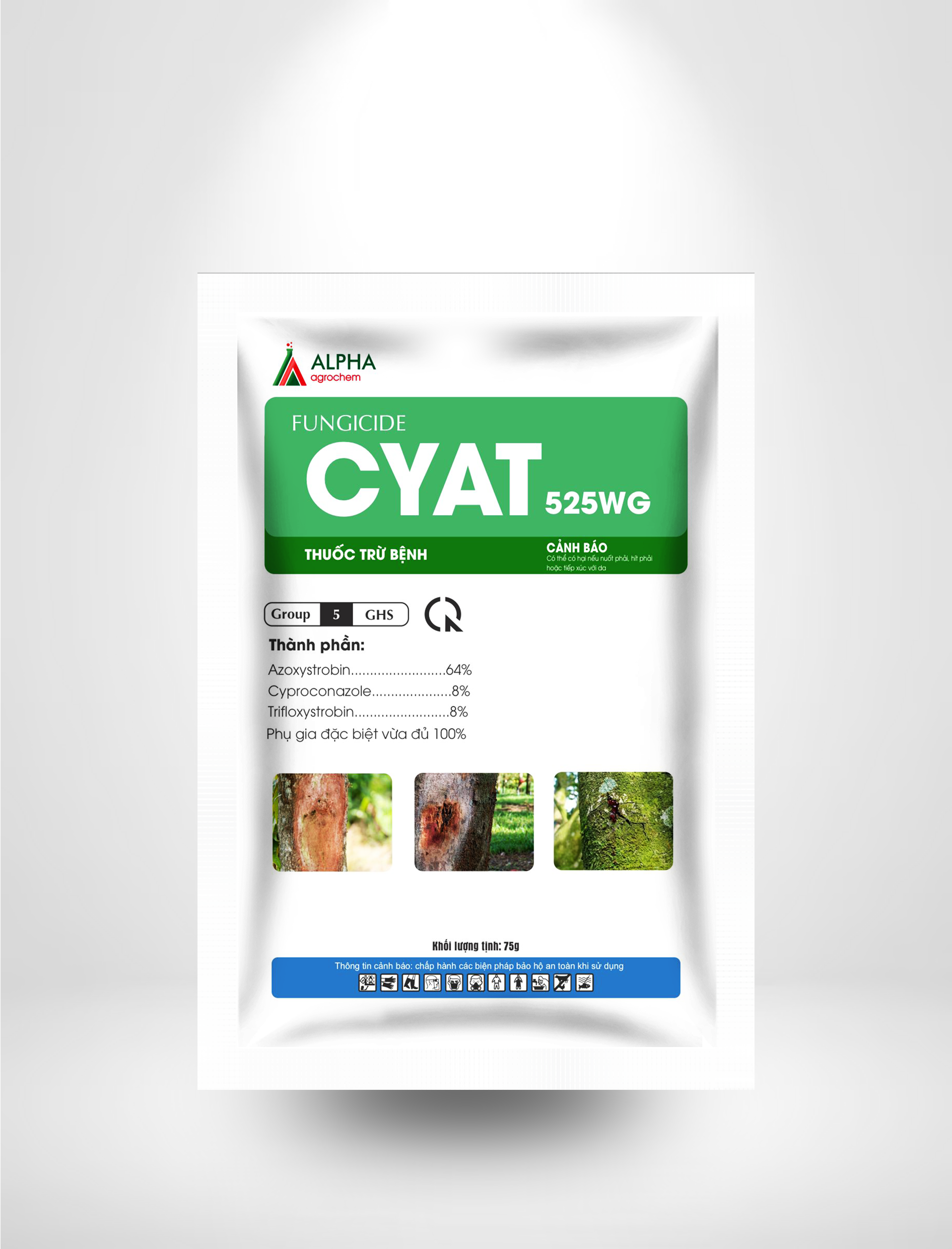 Thuốc trừ bệnh – Azoxystrobin 200g/kg + Cyproconazole 75g/kg + Trifloxystrobin 250g/kg – CYAT 525WG là sự kết hợp của 3 hoạt chất. CYAT 525WG có tác dụng trừ bệnh cây trồng nhanh chóng và hiệu quả. Đây là biện pháp xử lý đặc hiệu bệnh thối lúa, bệnh thán thư và bệnh phấn trắng trên cây lúa.