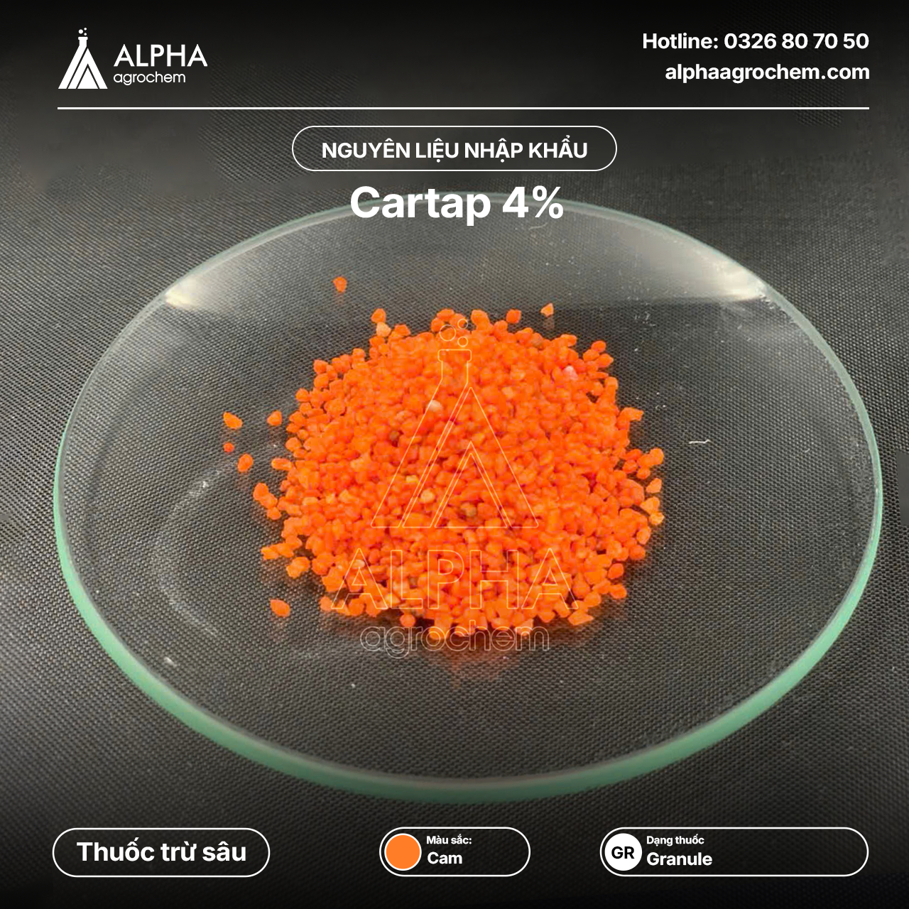 Cartap 4% tác động đến hệ thần kinh của côn trùng, khiến chúng bị tê liệt và chết sau đó. Cartap có khả năng thấm sâu nhanh và diệt trừ nhiều côn trùng gây hại cùng một lúc nhờ vào cơ chế tác động tiếp xúc và vị độc. Song song với đó, Cartap còn có khả năng tiêu diệt cả trứng, sâu non và sâu trưởng thành.